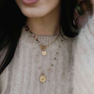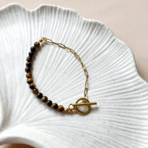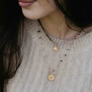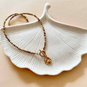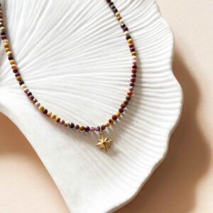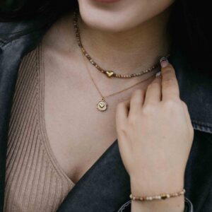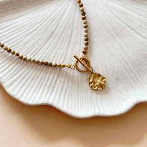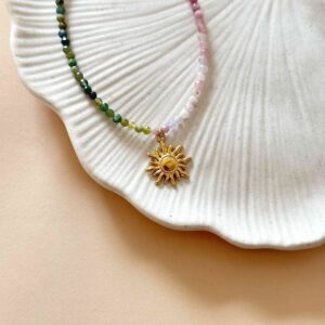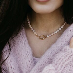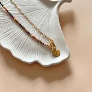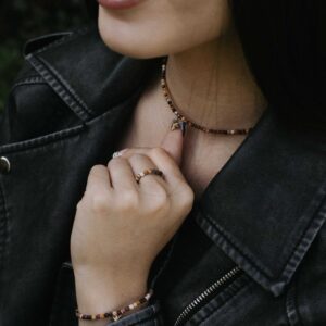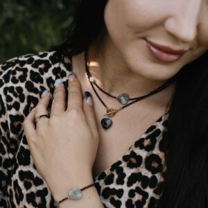Naszyjnik z wplecionymi kamieniami onyks/kamień słoneczny