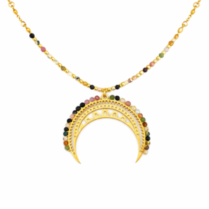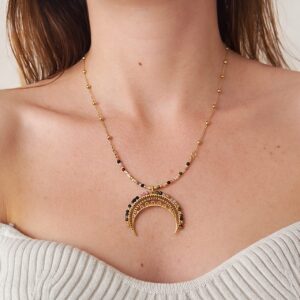 Choker wykonany z czarnego turmalinu z zawieszką w kształcie półksiężyca.