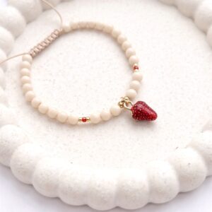Choker Fresa wykonany jest z kamieni naturalnych – jaspisu, dodatkowo ma dodaną zawieszkę w kształcie soczystej truskawki.