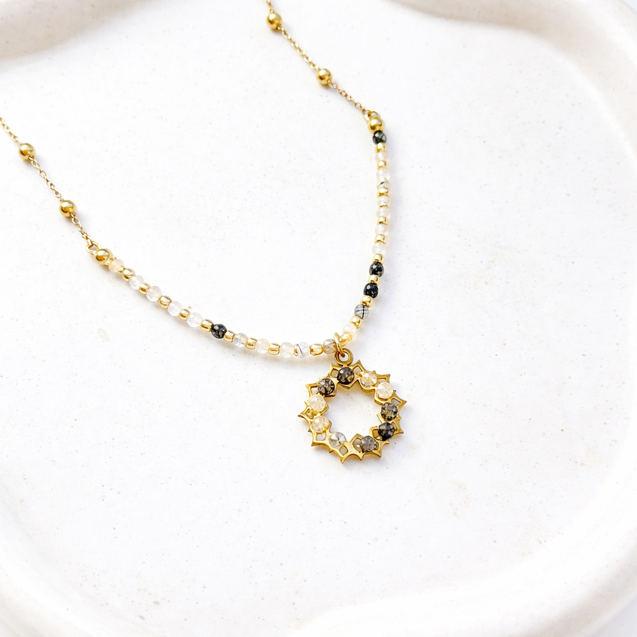 Naszyjnik Kwiat Lotosu z kryształem górskim i rutylem